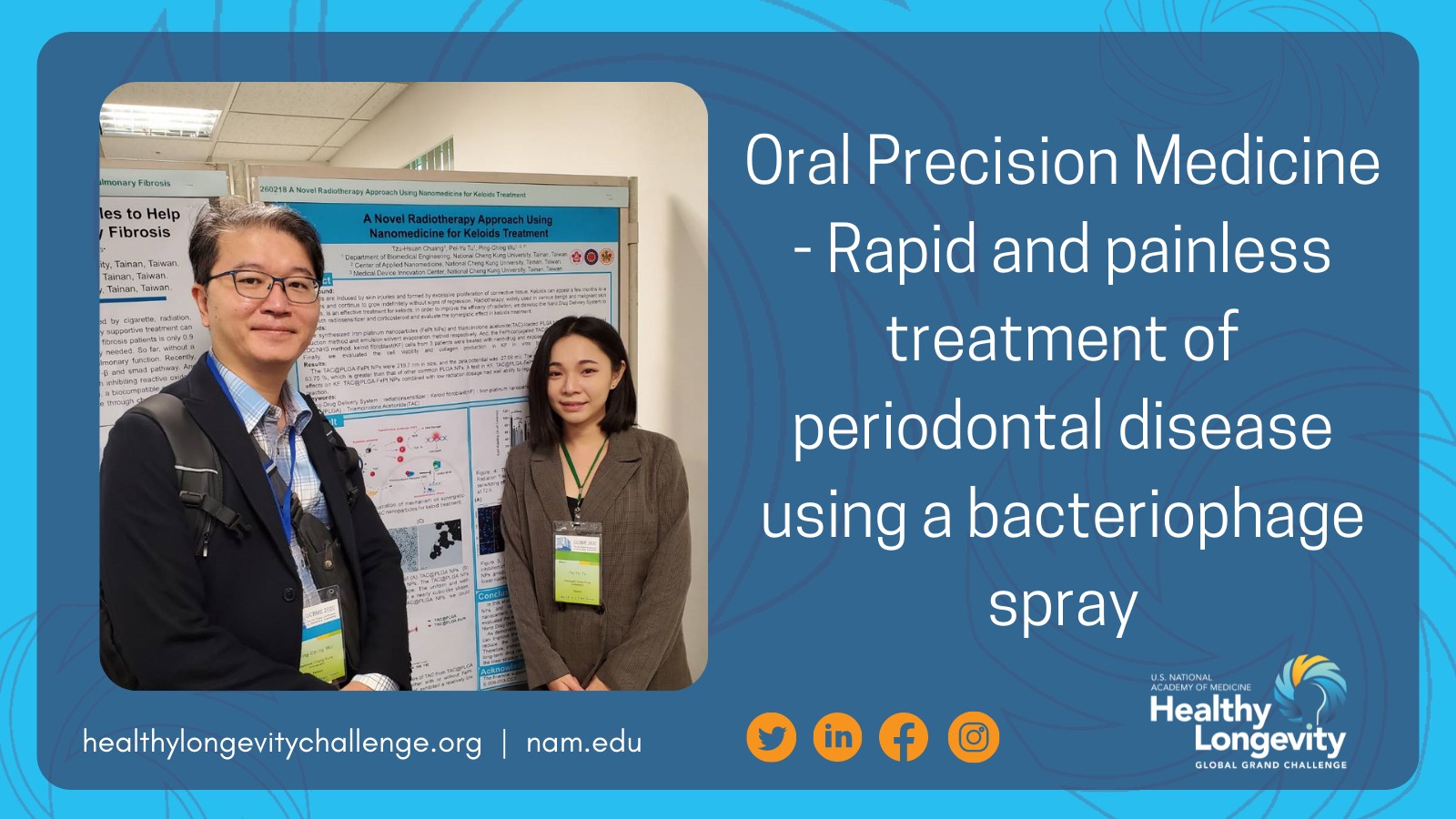 有鑑於臺灣2025年將邁入超高齡社會,中研院於2020年宣佈參與美國國家醫學院「健康長壽大挑戰計畫」,徵求跨學科領域且具創新的研究計畫,該計畫採三階段執行,第一階段「催化創新階段」自2020年開始,由各國分別投入種子基金支持各國種子計畫,中研院甄選以雙盲方式進行二輪審議,審查重點在於計畫內容所展現的創見和潛力。