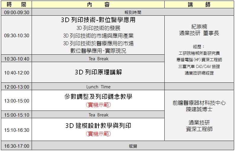 ►課程對象:有興趣使用3D列印與醫材產品開發的業者與個人。