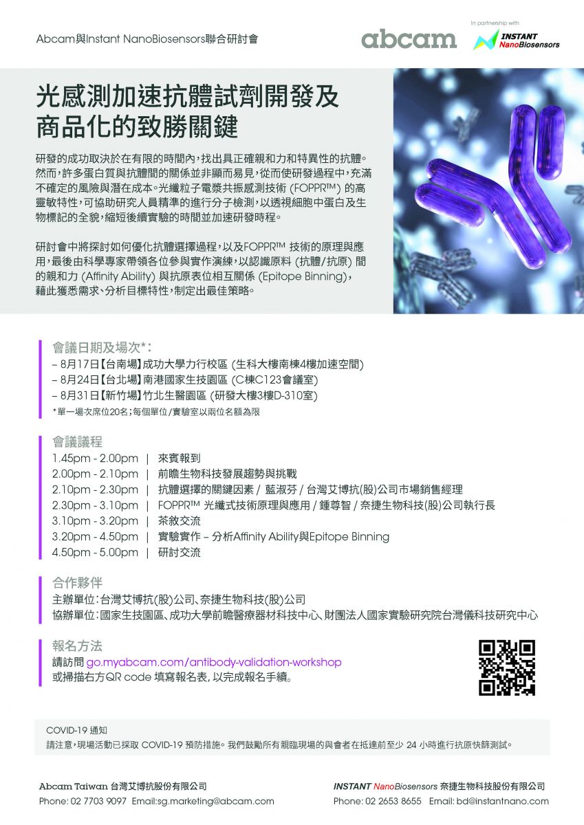 8/17 光感測加速抗體試劑開發及 商品化的致勝關鍵WORKSHOP