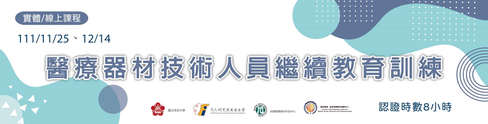 110年正式上路的醫材管理法規定,技術人員自製造業或販賣業者依本法第十三條第二項辦理登記之日起,每年應接受八小時繼續教育訓練,醫療器材技術人員管理辦法中亦明定其訓練應包括:(一)醫療器材相關法令;(二)醫療器材品質管理;(三)醫療器材違規案例解析三大類課程。 成大研究發展基金會(知識管理服務中心)為衛福部核可認證單位,偕同成大前瞻醫療器材科技中心共同規劃企業所需之訓練內容,本次將於2022年11/25、12/14開辦「醫療器材技術人員繼續教育訓練」課程,歡迎有興趣的產業先進及相關人員踴躍報名參加。 |