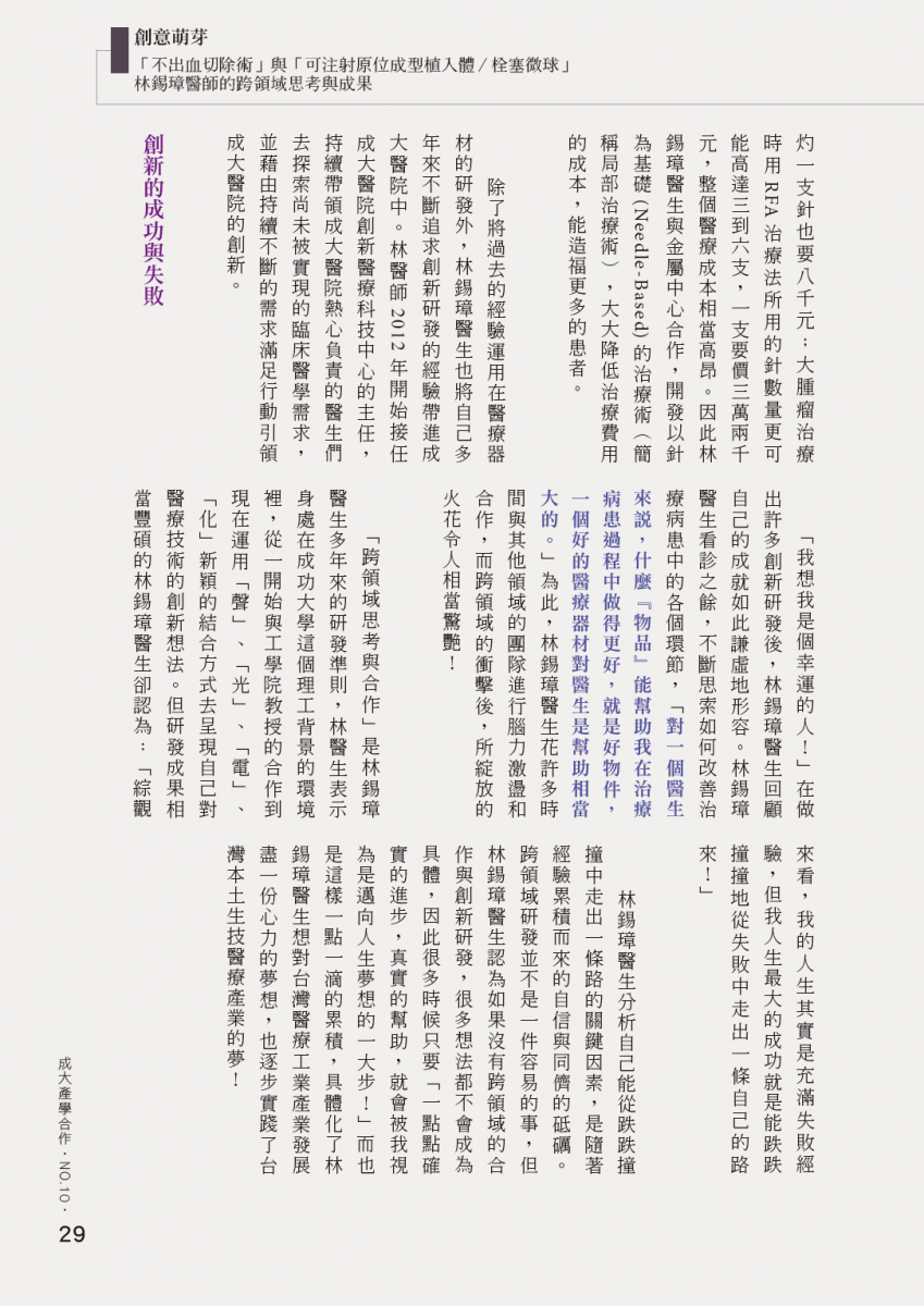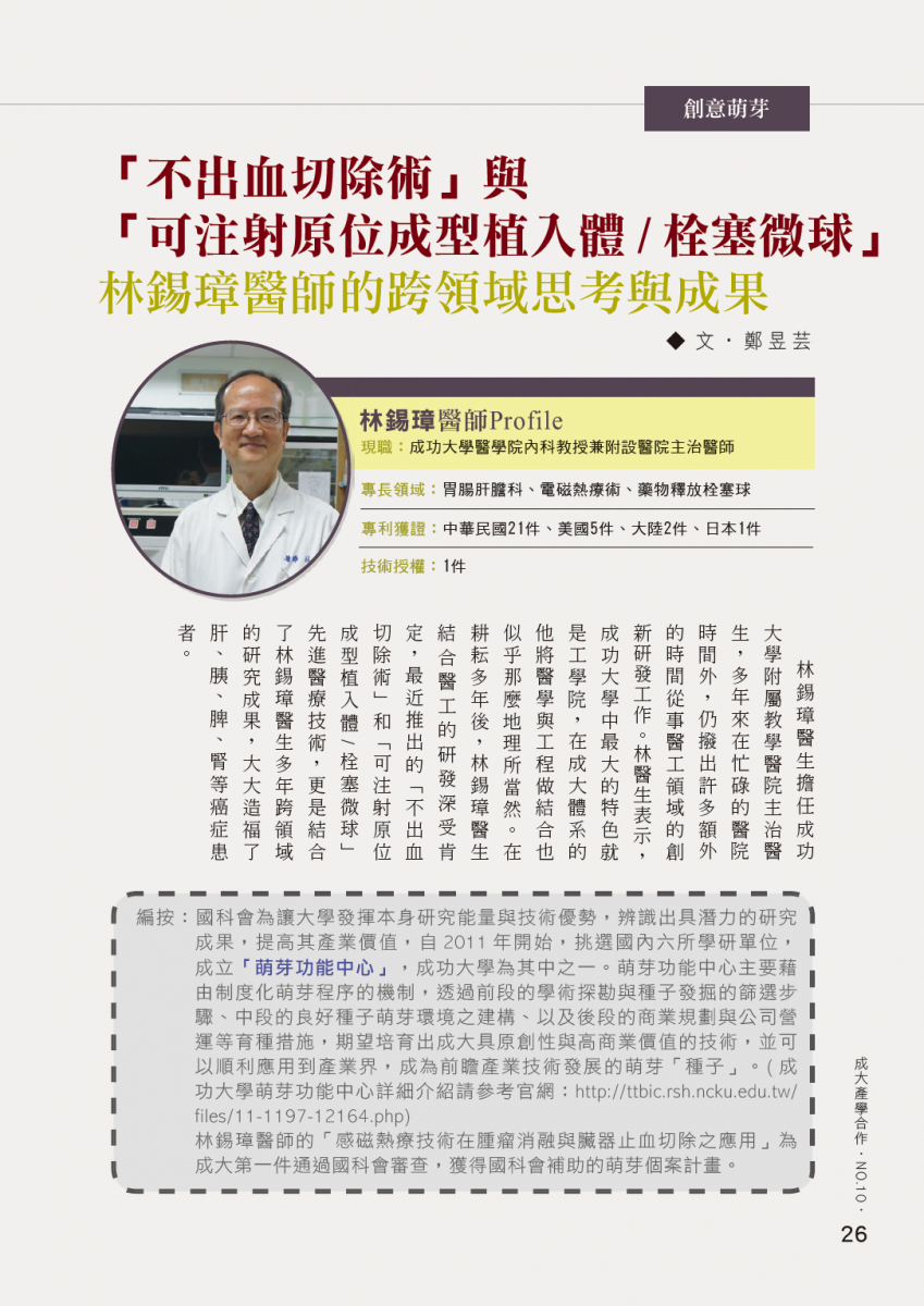 轉載-創新醫療科技中心林錫璋主任的跨領域思考與成果