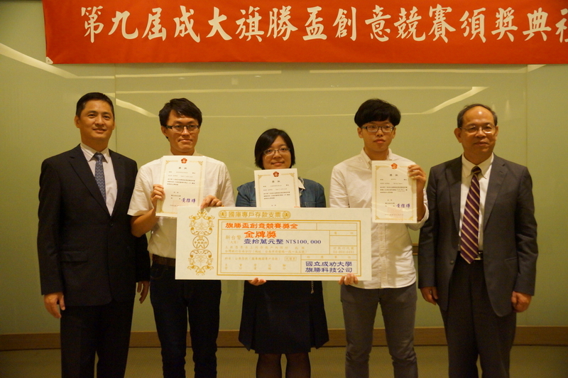 成大旗勝盃創意競賽十五日頒獎,今年由成大企業管理系碩士生黃琪婷與創意產業設計所碩士生陳威榮以「 SuperX血管止血器」拿下金牌獎,建築系大四學生陳義明則以可移動可變換的建築體「 Moving Campus!」獲年度主題 Being Smart、 Going Green獎,各獲十萬元獎金與獎狀。
